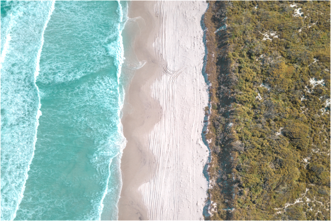 In balanced proportion and rugged contrast this birdseyeview captures the Australian lonesome wilderness, only goasttrails in the sand can tell the story of travelers and local fishermen passing by.