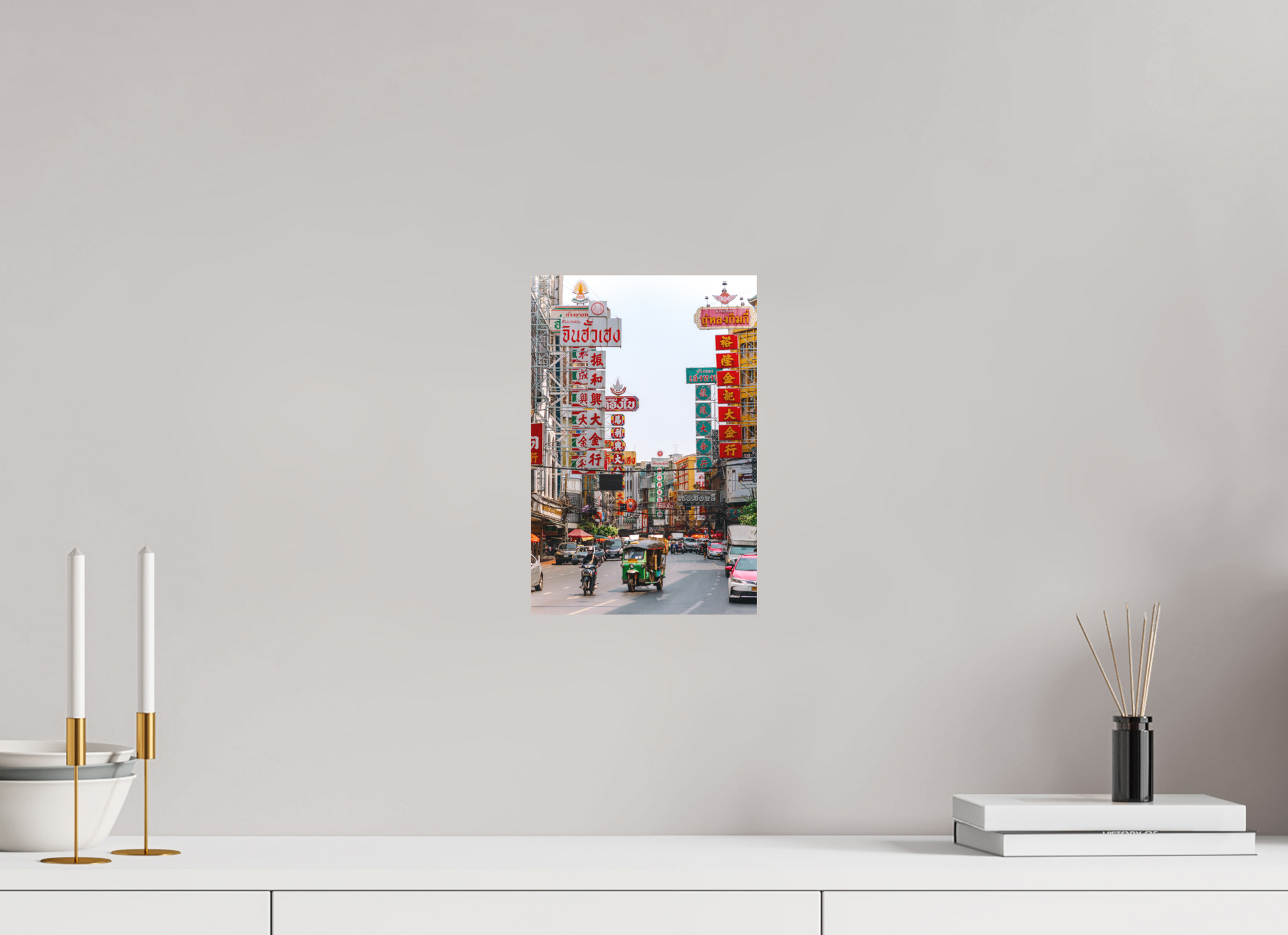 The busy streets of Bangkok's Chinatown, filled with colourful taxis, street signage and the typical Tuk Tuks provide a perfectly matching contrast to the streets of "Tokyo at night".